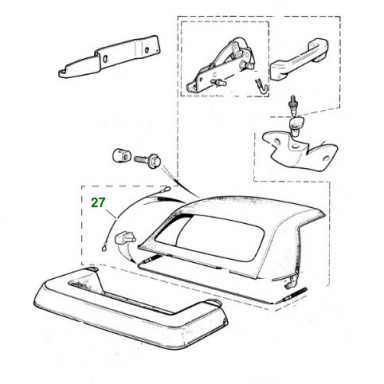 SIDE TENSION CABLE FOR CONVERTIBLE TOP, FOR EITHER SIDE, 2 NEEDED PER CAR. SEE #27 IN ILLUSTRATION. FITS 1989-1996 XJS FACTORY CONVERTIBLE (DOES NOT FIT HESS & EISENHARDT) (BEC1359)